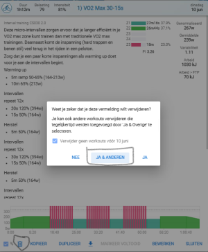 Als je het huidige schema nog in je agenda hebt staan, kun je die verwijderen, door de training op dinsdag10 juni te verwijderen en "ja & anderen" te kiezen: